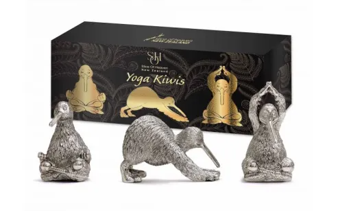 Elevate your gift-giving with the Yoga Kiwi Set of 3, beautifully electroplated in silver for a refined finish. This unique Kiwiana collection celebrates New Zealand’s iconic symbol with elegant craftsmanship, making it a thoughtful and stylish present. Presented in a tasteful color box, it’s perfect for those who appreciate meaningful design paired with sophistication. Size H 8.5 X W 4.5 X D 5.5CM