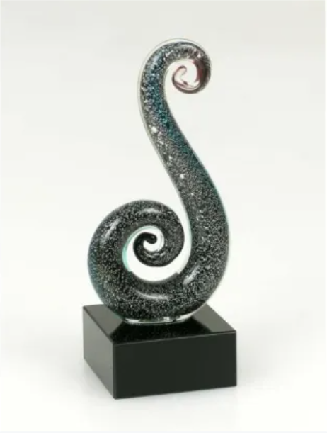 Glass Koru Fern Frond-Dark Green and Red 24cm